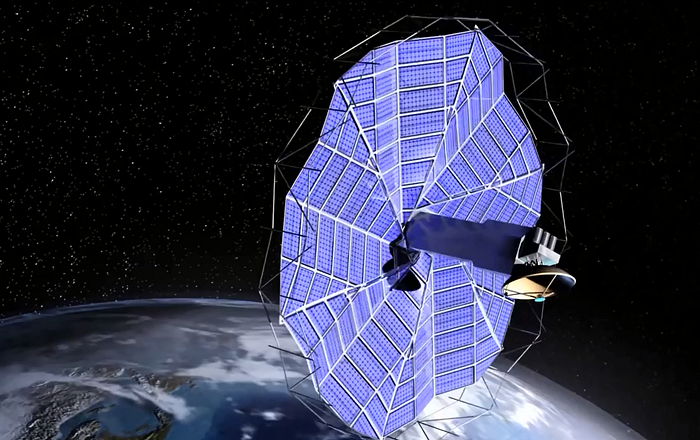 An artist’s rendition of an origami-inspired solar panel mid-deployment. Stowed lidar antennas could dramatically reduce the size and expense of space-based lidar instruments. Image credit: Ux Connections